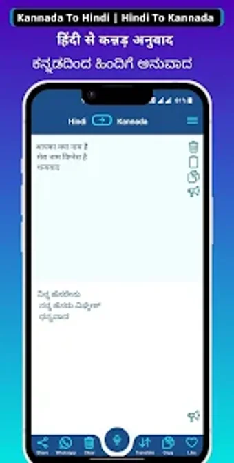 칸나다어 - 힌디어 번역기를 사용하면 칸나다어로 입력한 내용을 힌디어로 번역할 뿐만 아니라, 다양한 음조 설정으로 번역된 텍스트를 들을 수도 있습니다. 이 앱은 이전 번역 내역을 확인할 수 있는 기록 섹션과 가장 자주 사용하는 번역을 저장할 수 있는 즐겨찾기 섹션도 제공합니다. 번역된 텍스트를 복사하고 다양한 메시징 및 소셜 미디어 플랫폼에서 공유하는 것도 쉽습니다.